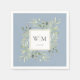 Elegant Dusty Blue Greenery Gold Monogram Serviette