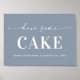 Elegant Dusty Blue Habe etwas Cake Wedding Sign - in schöner Handschrift und Ihrem personalisierten Text. Ein stilvolles und dennoch einfaches Design in jeder gewünschten Hintergrundfarbe. Klicken Sie einfach auf den Link "Bearbeiten" mit dem Tool, der unter dem Bereich "Textpersonalisierung" auf der rechten Seite angezeigt wird, und wählen Sie Ihren eigenen Farbhintergrund. Dieses Schild Poster-Template macht es einfach und schnell, atemberaubende Ergänzungen Ihrer Hochzeitsdekoration zu schaffen. Die Zeichen können vergrößert werden, es gibt viele Größen zur Auswahl, sowie Optionen für die individuelle Gestaltung und Anpassung. ~ Karo mein Geschäft oder Sammlung unten für weitere ergänzende Zeichen für Ihre Hochzeit