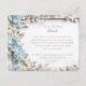 Diese elegante, romantische Karte mit edlen Details aus der Hochzeit besticht durch einen exquisiten Goldrahmen im Barockstil, der mit staubigen, blauen und elfenbeinigen Hydrangeas verziert ist. Die Blumendekorationen sind zart um luxuriöse goldene Blätter herum angeordnet und erinnern an eine klassische europäische Eleganz mit einer modernen Drehung. Ein kleines, passendes Monogramm-Medaillon fügt eine persönliche Touch hinzu und ist somit die ideale Einschließungskarte für wichtige Hochzeitsdetails wie Anfahrtsbeschreibung, Unterkunft und Tourenaktualisierung. Ideal für feierliche Hochzeiten mit einem Vintagen, aristokratischen oder blau-goldenen Thema.