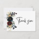 Elegant staubige blaue marineburdburgundische Blumenhochzeit Dankeschön Card. Mit dieser eleganten, staubigen blauen, marokkanischen und bordeauxfarbenen Hochzeit Dankeschön im Stil. Mit einem raffinierten Blumenarrangement in romantischen, reichen Farbtönen fügt diese Karte Ihrer Post-Hochzeit-Korrespondenz eine raffinierte Touch hinzu. Die zeitlose Farbpalette, gepaart mit eleganter Typografie, schafft einen klassischen und dennoch modernen Look, der perfekt zu Ihrer Hochzeitssuite passt. Diese Karte ist ein herzliches Dankeschön an Ihre Gäste für ihre Liebe und Unterstützung. Sie eignet sich perfekt für Herbst-, Winter- oder Hochzeitsfeiern.