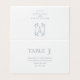 Elegante Dusty Blue Monogram Wedding Platzkarten mit Initialen von Bride & Groom mit einem trendigen Wappen in Dusty Blue, um für jeden Tisch mit Anzahl und Gästennamen zu personalisieren.