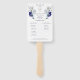 Dieser schöne und funktionale Handfan ist perfekt für jede Hochzeitsfeier. Es zeichnet sich durch ein atemberaubendes Design von staubblauen und marinösen Blumen mit einer goldenen Touch aus und schafft so einen eleganten und eleganten Look. Auf der Vorderseite des Fans befinden sich die Namen und das Datum des Ehepaares, auf der Rückseite befindet sich das Zeremonie-Programm.