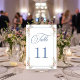 Elegant Dusty Blue Pastel Wildflower Crest Wedding Tischnummer