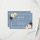 Die moderne Elegant Watercolor Rosa Blush Blue Blues Dusty Blue Wedding RSVP Card beinhaltet blaue Rose, rosa Rosen und Grünpflanzen.