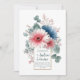 Invite your guests with the modern elegance and romantic charm of this beautiful wedding invitation. The design showcases a stunning, painterly watercolor bouquet gracefully arranged around a central frame, set against a crisp white background. Gorgeous Gerbera daisies bloom in sophisticated shades of dusty blue and soft blush pink with white, displaying their detailed centers. This exquisite arrangement is artfully interwoven with airy sprays of delicate pink filler flowers and abundant dusty blue-green eucalyptus leaves, creating a fresh, contemporary, and romantic feel. A minimalist, thin gold rectangular frame provides a perfect, clean space for your event details. Ideal for spring or summer weddings with a modern floral theme, this invitation design is also perfect for sophisticated bridal showers, garden parties, anniversary celebrations, or milestone birthday events. This versatile design can also be adapted for stylish corporate events, seasonal promotions, or elegant announcements requiring a touch of refined floral beauty.