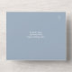 Alles in einer Hochzeitseinladung mit eleganter Typografie auf staubblauem Hintergrund. Die Einladung enthält eine perforierte RSVP-Karte mit QR-Code. Entwickelt von Thisisnotme©
