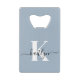 Elegant Dusty Blue Script Monogram Geldbeutel Flaschenöffner