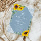 Elegant Dusty Blue Sunflowers Cross Taufe Einladung
