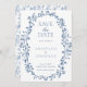 Erzählen Sie Ihren besonderen Tag in einem raffinierten Stil mit unserem eleganten Französisch Blue Vintag Viktorianische Blumenhochzeit Retten Sie die Termine. Diese Karten sind mit einem aufwändigen Blumendesign und einer zeitlosen französischen blauen Farbpalette gestaltet und bilden eine perfekte Mischung aus klassischer und zeitgenössischer Ästhetik. Auf der Vorderseite der Karte finden Sie die wesentlichen Details Ihres Events, die mit einem wunderschönen Blumenrahmen geschmückt sind. Auf der anderen Seite ein elegantes ergänzendes Blumenmuster. Verzieren Sie Ihre Hochzeitsankündigung mit einer eleganten Touch, die den Ton für Ihren großen Tag Set!