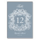 Elegant Dusty Blue Vintage Crest Wedding Tischnummer