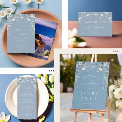 Sie möchten auf Ihrer Hochzeit dauerhafte Erinnerungen schaffen? Unsere exklusive Kollektion, die von Ihnen individuell gestaltet werden kann, ist die perfekte Lösung! Das elegante, blaue Blume Foto Hochzeit speichern Sie das Datum.