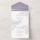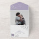 Elegante, moderne, Vintage, boho, blühend staubige lila Hochzeitseinladung mit silbergrauer Blumenspitze und Foto des Paares. Fügen Sie Ihre Fotos, Ihre Hochzeitsdetails und uAwg.