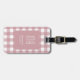 Elegant Dusty Pink Gingham Monogram Luggage Tag.