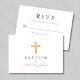 Personalisierte Elegant Dusty Pink Religious Wood Boy Taufe RSVP Karte.
