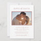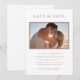 Save The Date! Mit diesen schlicht eleganten vertikalen Ankündigung Datum freihalten-Karten, die Ihr Lieblings-Foto in horizontaler Verlobung und eine Formulierung enthalten, die mit allen wichtigen Details personalisiert werden können, kündigen Sie Ihre Hochzeit stilvoll an. Ein modernes, sauberes und zeitloses Design. Die staubige Rose / Lila Rosa und Weiß können individuell angepasst werden, um mit Ihrem Verlobung Foto oder Hochzeitsfarbschema zu koordinieren.