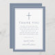 Elegant Dusty Blue Religious Cross Baptism Thank You Card.