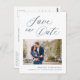 Einfaches Minimalistisch Slate stausty blue Foto Save the Date Postcard . Weitere passende Designs und Variationen finden Sie in meinem "Blitzweddingpaperie" Shop. Und zögern Sie nicht, mich für weitere Anpassungen oder Match-Artikel zu kontaktieren.