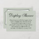 Wenn Sie eine Dusche ohne Geschenkverpackung für eine zukünftige Mutter beherbergen, könnte diese hübsche, einfache Karte die richtige Wahl für Sie sein. Mit einem hübschen, traditionellen Skript-Schriftart fügte ich einen Header hinzu, der auf der Vorderseite "Display Shower" und auf der Rückseite "Giraft with Liebe from:" lautete. Das Vorlagenfeld war Set, um den Gästen Anweisungen zu geben, die ihr Geschenk nicht einpacken; bitte ändern Sie den Wortlaut bei Bedarf. Alle Schriftart und Farben können nach Belieben modifiziert werden.