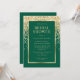 Elegant emerald green and gold bridal shower invitations featuring gold confetti.