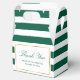 Diese smaragdgrün gestreiften Gastgeschenk Hochzeiten-Boxen lassen sich einfach mit Ihren Hochzeitsdetails personalisieren. Diese personalisierten Dankeschön-Schachteln können an andere Gelegenheiten angepasst werden, wie Geburtstage, Brautduschen oder Babyduschen.