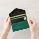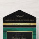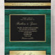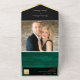 Elegante, moderne, luxuriöse, minimale smaragdgrüne, goldene und schwarze all-in-one Hochzeitseinladung mit individuellem Bild des Paares hinten. Fügen Sie Ihr Foto, Ihre Hochzeitsdetails und uAwg.