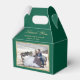 Elegantes smaragdgrünes Hochzeitsgeschenk Foto Gunst Box. Diese Gastgeschenk Hochzeiten können Sie ganz einfach mit Ihren Hochzeitsdetails personalisieren. Unsere maßgeschneiderten Hochzeitsgartons sind perfekt für Ihre klassische smaragdgrüne Hochzeitsfeier. Diese personalisierten Dankeschön Sie Gefälligkeitsboxen können an andere Anlässe, wie Brautparty, angepasst werden.