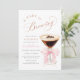 Announce your baby shower with this elegant "A Baby is Brewing" invitation, inspired by the rich allure of espresso. This design beautifully merges the theme of new beginnings with the sophisticated charm of a coffee-themed celebration. The centerpiece is a detailed watercolor of a martini glass with coffee and beans, complemented by a delicate pink bow, symbolizing sweetness and anticipation. The phrase "A Baby is Brewing" is rendered in a beautiful script, making it a perfect invitation to gather friends and family to honor the mom-to-be. This invitation is sure to set a delightful tone for your upcoming event.