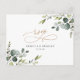 Diese individuell gestaltbare UAwg Postcard ist für die Abstimmung mit unserer Hochzeitskollektion Boho Greenery Gold konzipiert und verfügt über üppige Aquarelltoneukalyptus-Blätter in Kombination mit einem romantischen Kalligraphiegrafietext, gepaart mit einer klassischen Serif & modernem Sans-Schriftart in Schwarz. Matching-Elemente verfügbar.