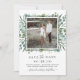 Mit diesen eleganten Ankündigung Datum freihalten-Karten kündigen Sie Ihre Hochzeit stilvoll an: ein Foto mit Verlobung, gerahmt von einem modernen, schwarzen quadratischen Rahmen und ein Bio Aquarell-Design mit Eukalyptusblättern, Blätter und silbernen Eukalyptuszweigen in sanften grünen Minztönen, Grün, Oliven und duftendem Blau - ideal für Frühjahr- oder Sommerveranstaltungen. Die koordinierende weiche grüne Hintergrundfarbe auf der Rückseite der Karte kann durch Anpassen auf Weiß oder eine andere Farbe geändert werden.
