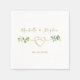 Elegante, botanische, moderne Hochzeitsnapkins mit eukalyptusgrünen Aquarellen, einfacher Kalligraphie-Schrift und goldenem Seilherz.