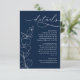 This wedding details enclosure card features a rich navy blue background with clean white text. Delicate eucalyptus spring line art adds a soft botanical touch. The layout is elegant, modern, and easy to read. This card is ideal for sharing important wedding information with your guests!