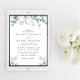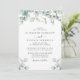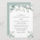 Elegante Einladung zur Hochzeit mit Aquarellen aus Weiß-Eukalyptusgrün, stilvollem Drehbuch und weicher grauer Typografie. Auf der anderen Seite geben Sie Ihre Hochzeitswebsite-Adresse ein, um einen QR-Code für Ihre Gäste zu erstellen, um online zu scannen und zusätzliche Hochzeitsdetails wie Unterkünfte zu erhalten.