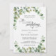 Schöne eukalyptus Hochzeit Einladung mit Skript Typografie. Elegante handbemalte Aquarellfarben in sanften pastellfarbenen Grüntönen. Einfach die Vorlage mit Ihren Hochzeitsdetails bearbeiten. Eleganter Eukalyptus Hochzeitsempfang.