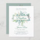Moderne und elegante Einladung für Ihre Tochter oder Ihren Sohn mit moderner Typografie und hübschen Eukalyptus-Blätter und Kreuz. Für passende Artikel oder Hilfe kontaktieren Sie bitte den Designer LeahG.