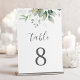 Schöne Tischnummern mit Aquarell Eukalyptus und goldenen Blätter. Ideal für Hochzeiten im Freien.
