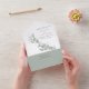 Dieses einzigartige botanische Design zeichnet sich durch einen kurvenreichen Zweig eleganter Aquarelltöne mit kunstvoll silberumrissenen Blätter und weißen Wildblumen aus.