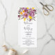 Elegant fall winter purple floral wedding program featuring a modern and elegant calligraphy the wedding of Script in purple, orange and yellow flowers with sage green foliage.