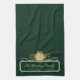 Elegante Familie Zuhause Monogram Gold Green Kitchen Handtuch. Herrliches Design in reichen Gold, Creme, und tiefe Wälder grün / britisch Renngrün Farben. Individuell anpassbare Familie Monogramm Initial, Familienname und Hausname, (oder jeder Text, den Sie wählen). Wir laden Sie ein, unseren Zazzle-Shop, Austen & Grace, zu besuchen, um passende Produkte und mehr zu sehen.
