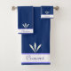 Elegante Federn auf dem marineblau blauen Bath Towl Set. Crescent Text kann angepasst werden.