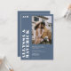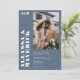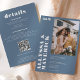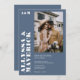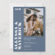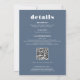 Elegant kühl, weiß auf staubigen blauen Foto Hochzeitseinladung mit einem modernen kühnen Schriftart, ein Foto und alles in einem Detail auf der Rückseite mit qr-Code.