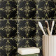 Elegantes Keramik-Fliesen-Design mit goldenen Ornamenten auf einem schwarzen Hintergrund.