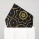 Elegantes Gewebe-Papier-Design mit einem nahtlosen Muster aus geometrischen Formen in Imitat Gold und Glitzern auf einem schwarzen Hintergrund.