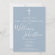 Elegante Erstheilige Kommunion-Unterschrift Save the Date Einladung mit einem eleganten Schriftsignaturnamen auf staubblauem Hintergrund. Personalisieren Sie Ihre speziellen Event-Informationen. Entwickelt von Thisisnotme©