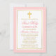 Eleganter Rosa Blush und Gold Erste Heilige Kommunion Einladung mit Kreuz.