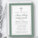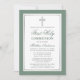Moderne elegante Szene Grün und Silber Erste Heilige Kommunion Einladung mit Kreuz.