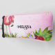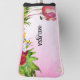 Rosa Flamingo Wasserfarbe mit Rand von eleganten tropischen Blumen. Herrliche Sommerfarben machen das Geschenk für Sie oder Ihren Lieblingsgolfer hübsch.
