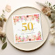 This 50th wedding anniversary paper napkin showcases a graceful watercolor floral border along the top and bottom. Soft shades of pink and peach create a delicate charm—perfect for golden milestone celebration.