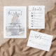 Dieses Design besticht durch einen blauen, blauen, einfarbigen Ampersandband mit Bauchband mit grünen Blätter, eine elegante klassische Einladung, eine stilvolle angesagte Kalligraphie-Schrift, romantische Eleganz, schlichte, blassrosa Erdtöne, weiße Blumen-Blume-Babyatmung, ein Hochzeitspapier, mit Monogramm Initialbriefe, vereinfachende minimalistische Eleganz