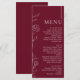 Elegant Floral Burgundy Formal Wedding Dinner Menükarte