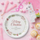 Elegant Floral Christmas Wreath Family Custom Name Pappteller